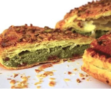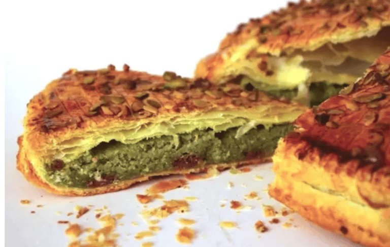 Inspirée des célèbres tablettes chocolat Dubaï, la Galette Dubaï dévoile un feuilletage croustillant renfermant un cœur intensément gourmand à la pistache.