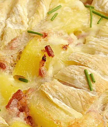 Cœur fondant & généreux : pommes de terre fondantes, reblochon crémeux, lardons savoureux et oignons doux.